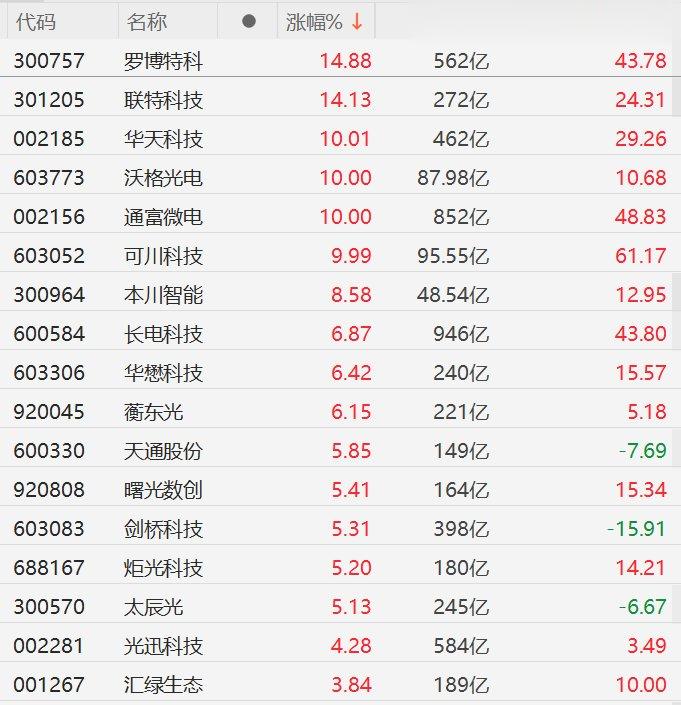 格隆汇1月21日|A股市场CPO概念股走强,其中,罗博特科、联特科技涨超14%,华天科技、沃格光电、通富微电、可川科技10CM涨停,本川智能涨超8%,长电科技、华懋科技、蘅东光涨超6%,天通股份、曙光数创、剑桥科技、炬光科技、太辰光涨超5%。