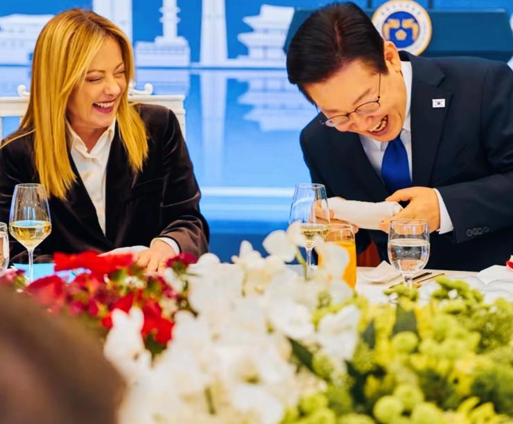 李在明和梅洛尼咋笑的如此开心啊! 梅洛尼和李在明两人在讨论什么话题呢? 李在明的