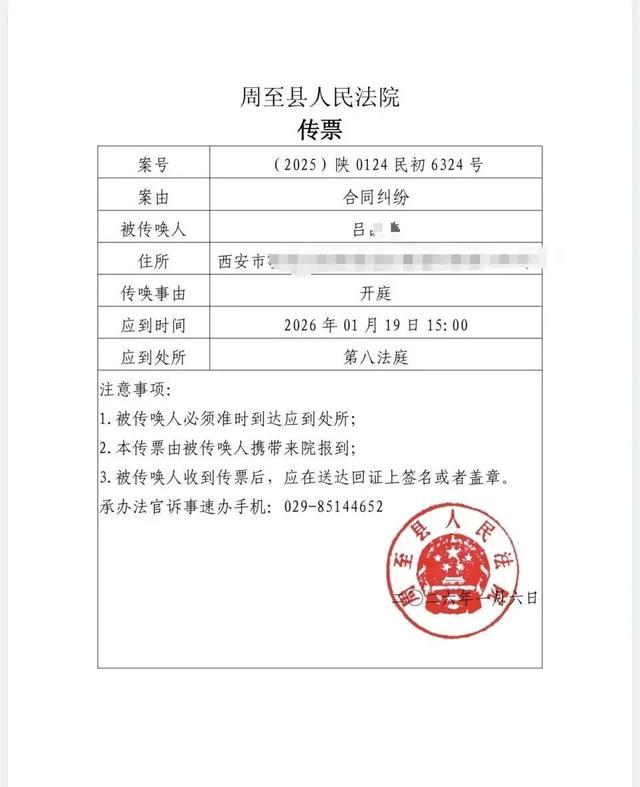 周至县人民法院传票显示,该案于2026年1月19日下午在周至县人民法院开庭审理。吕先生称,庭审中,景区负责人承认存在工作错误,同意退还门票款,但因财务流程要求,需待判决书出具后执行。