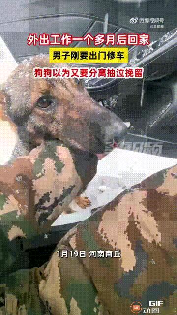 太感动了!河南商丘一名男子养了一只小狗,外出工作一个月回家后,小狗非常地开心,每天都跟在男子身边转悠。 可看见男子打开车门上车后,小狗瞬间就跑了过来,叼着男子的衣服不让他离开,眼眶湿润了,鼻子里也发出抽泣的声音。 男子见状很是动容,他表示自己只是想去修车而已,没想到小狗会扑过来挽留。 网友看完这段视频,都觉得这只小狗的举动,实在是太让人感到泪目了。 这只小狗从小就被男子领养了,可以说是男子一手带大的,所以在小狗心里,男子就是它最重要的人,就像是亲眷一样。 万物皆有灵,小狗同样也有不舍的情绪。 之前男子离家工作一个月,相信小狗心里已经非常思念他了,而这次眼见男子打开车门坐上车,想必是又以为他要离开了,所以才会上前叼住他的衣服,不让他走。 这就像很多父母离开家去外地打工,把孩子留在家里一样,孩子会非常地不舍与难过,这份心情实在是让人感动。 希望这名男子有时间能够多陪陪小狗,这么有灵性的小狗,也是很让人心疼了。大家怎么看呢?