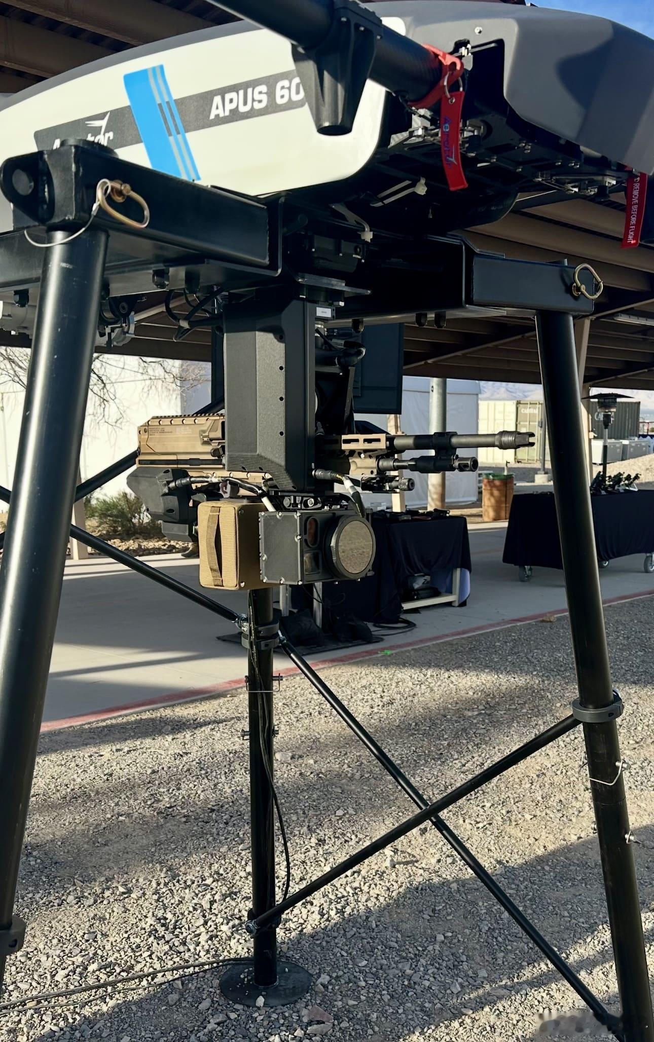 shotshow2026 上展示的“火风暴”(Firestorm)武装四旋翼无人机,基于以色列航空航天工业公司(IAI)的APUS 60 无人机,配备西格绍尔公司LMG 762机枪,得益于其多燃料内燃机,Firestorm 的滞空时间可达 3 小时。若一个单位配备多架 Firestorm,可通过错开出动时间,实现 24 小时不间断覆盖。相比之下,电池驱动无人机由于续航时间短、充电时间长,在作战中往往会出现明显的空档。每天认识一件兵器 续航能力的另一个关键因素在于,其发动机以固定转速和固定速度运行,而悬停与定点保持则通过改变桨叶桨距来实现。这使 Firestorm 能够在最大 23 节的风速下起降,并在高达 40 节风速的条件下飞行。与传统依靠发动机转速变化的方式相比,桨距调节的反应速度快 10 倍。这也带来另一项优势:发动机在无人机响应操控指令时转速不发生变化,从而降低了被声音探测到的概率。此外,尽管 Firestorm 具备极长的悬停时间,但它仍然为机载武器站保留了充足的动力。其最大起飞重量为 72 千克,其中有效载荷重量为 35 千克。Micolight 轻型遥控武器站基于 General Robotics 的 Bulldog 系统,但体积更小、更紧凑,重量略低于 10 千克。该武器站针对发射 7.62 毫米 NATO 弹药的 SIG 中型机枪进行了优化。传感器系统的可视距离达 25 公里,包含一套 10 倍变焦的光电传感器,以及 5 倍变焦的红外传感器;此外还配备激光测距仪,软件则集成了自动目标识别与跟踪功能。目前,射击测试仍仅限于悬停状态下进行,研发团队正致力于实现飞行中射击的能力。该系统具备良好的机动与部署性能,机臂可折叠,展开后即可迅速投入使用,并且已经接受过多国海外客户的测试。