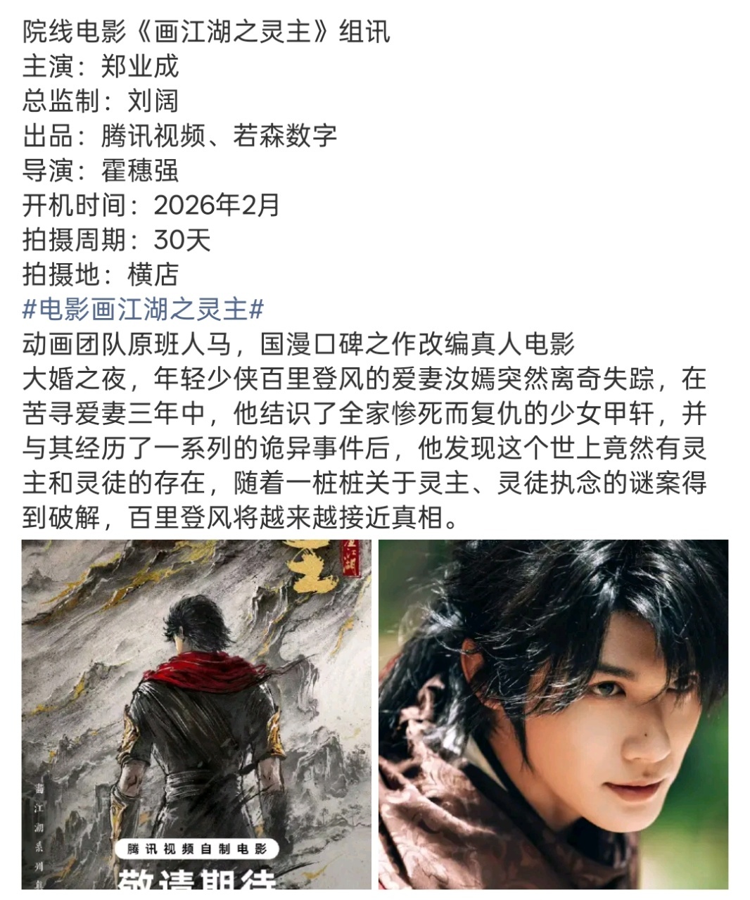娱乐画江湖之灵主组讯 《画江湖之灵主》要拍真人版电影,2月开机,拍摄30天,郑业