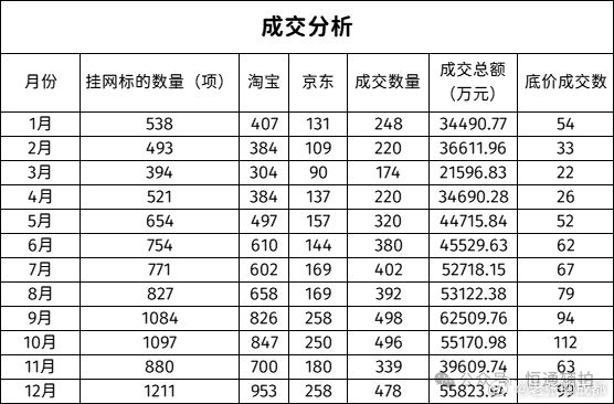 成都2025年住宅法拍数据(来源于恒通辅拍,感谢恒通的数据)一、 年度汇总统计项目 年度总计挂网标的数量(项) 9224其中:淘宝 7172其中:京东 2052成交数量 4167成交总额(万元) 536,590.26底价成交数 763核心年度比率:整体成交率:成交数量 / 挂网数量 = 45.2%淘宝/京东挂网占比:77.8% / 22.2%底价成交占比:底价成交数 / 成交数量 = 18.3%成都一年23.4万套二手,法拍4167套,法拍占比1.78%也不算少数了。从月度成交率来看,呈现逐步走低的一个状态。