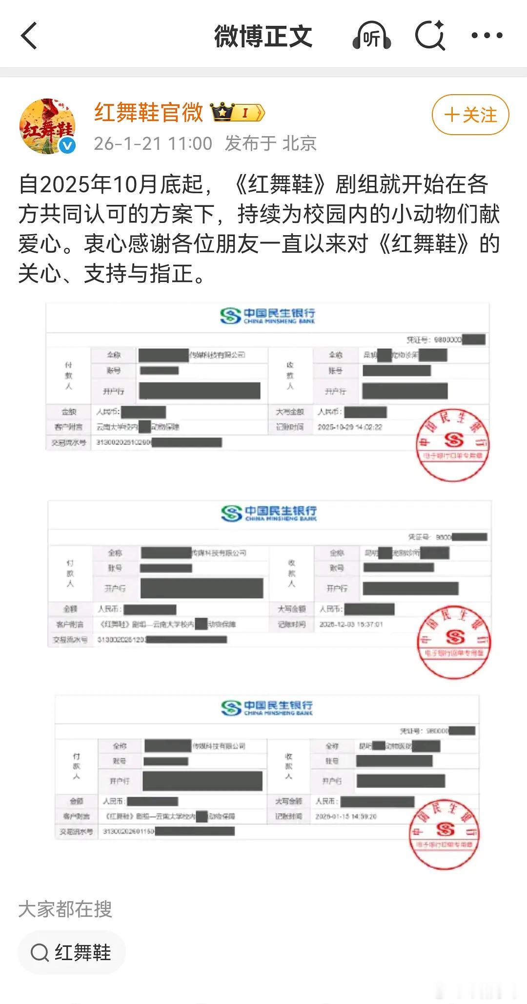 红舞鞋的公关不知道谁做的,一开始对学生重拳出击,现在发个捐款还把金额全打码,有必要吗