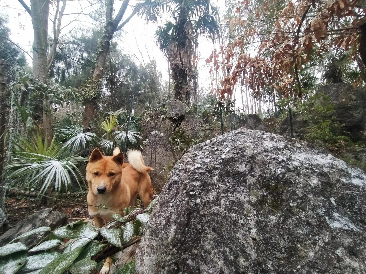 昨晚山里下冻雨了,还呼呼的刮着北风,是真冷啊!早上起床推开门,目光所及之处皆是一片亮晶晶的银白,植被和大地都被包裹在一层薄薄的冰霜下,风起时,挂了冰霜的树枝微微荡漾,冰凌相互轻轻的磕碰,声音细碎清冷,像远古的寺庙里的梵钟,被风拂过最边缘的一角,发出幽幽的回响,越发让人觉得寒冷 把取暖器都搜出来用上了,狗子们都围着火炉取暖,母鸡们也缩在铺满厚厚松针的窝里,偶尔发出极轻的咕咕声,像是在梦呓 只有大黄狗“糯米”是不屑于取暖的,它大约是家里最不怕冷的一员,在院子里脚步轻快的这里闻闻那里嗅嗅,对着枝桠上、石头上的冰霜好奇的打量,还要用爪子去拔弄几下,似乎也不害怕冻脚,它永远都是那么活力满满,生动有趣,即便是在这寒冷的环境里…… 天地虽大,寒风虽厉,但看着它们,这一隅的安稳,便已是全部的世界了