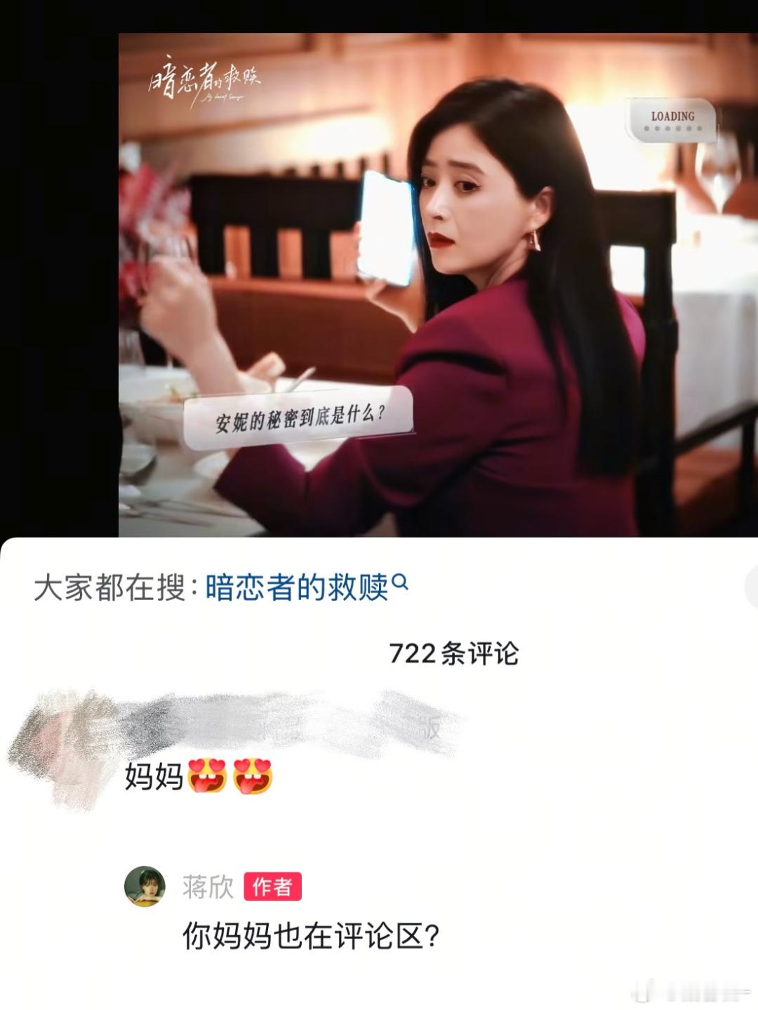我笑得好难受 蒋欣回复怎么这么有梗蒋欣 你妈妈也在评论区
