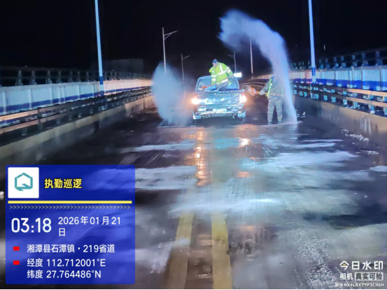 面对1月19日至22日首场寒潮引发的低温雨雪冰冻天气,湘潭县交通运输局紧扣“排查、管控、储备”三项措施精准发力,严格落实防范应对部署,以精准举措筑牢公路通行安全屏障,全力保障全县路网在极端天气下安全畅通。