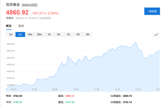 在地缘政治摩擦加剧与贸易保护主义阴云的笼罩下,黄金价格正以惊人的势头突破历史高位,5000美元关口已触手可及。