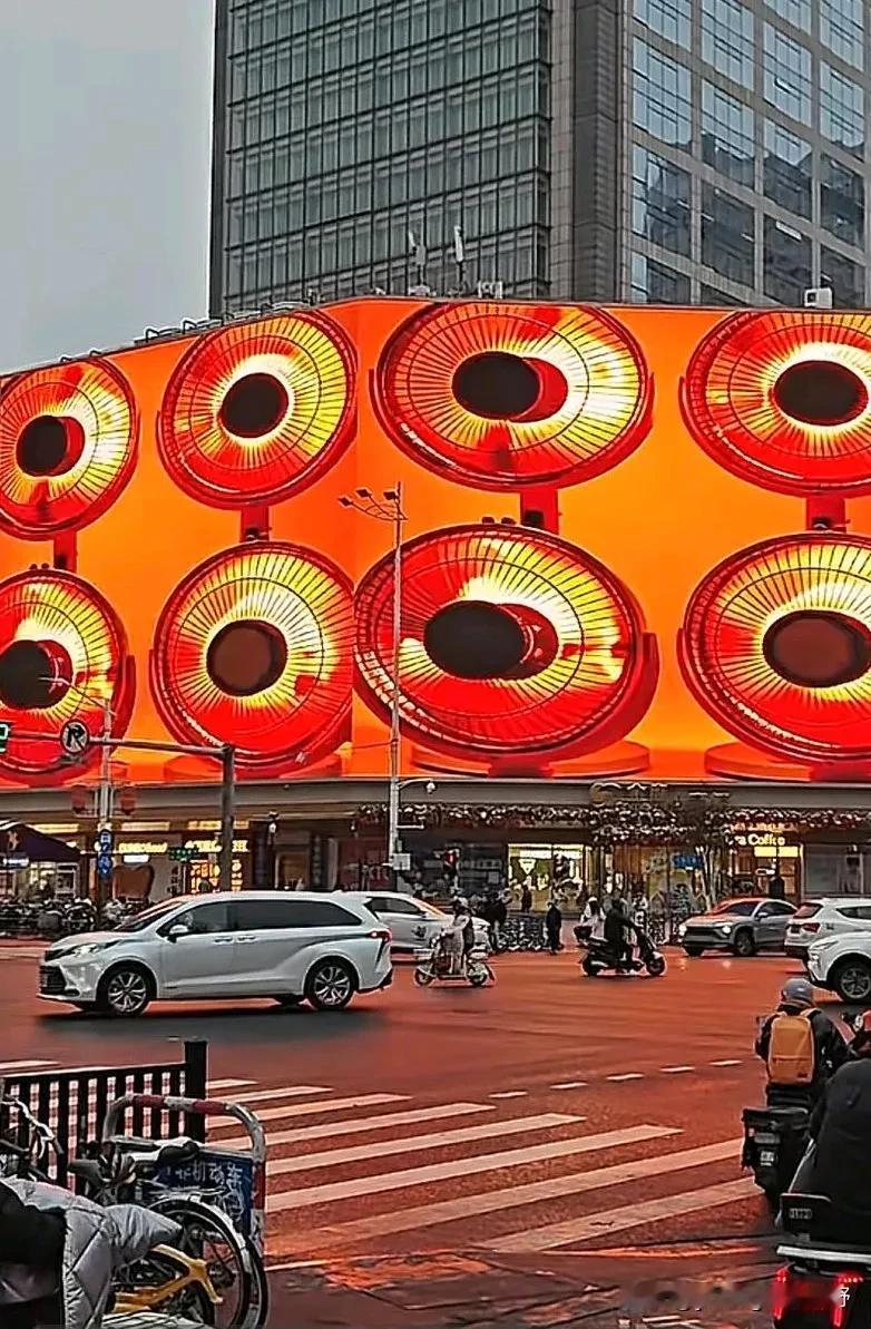 南京街头,商场在外部的大屏幕上直接放上多个小太阳电暖器的影像,连门口的道路颜色都变红了。古有望梅止渴,今有望屏取暖,就问你还冷不冷,有没感受到暖意?[呲牙][呲牙]