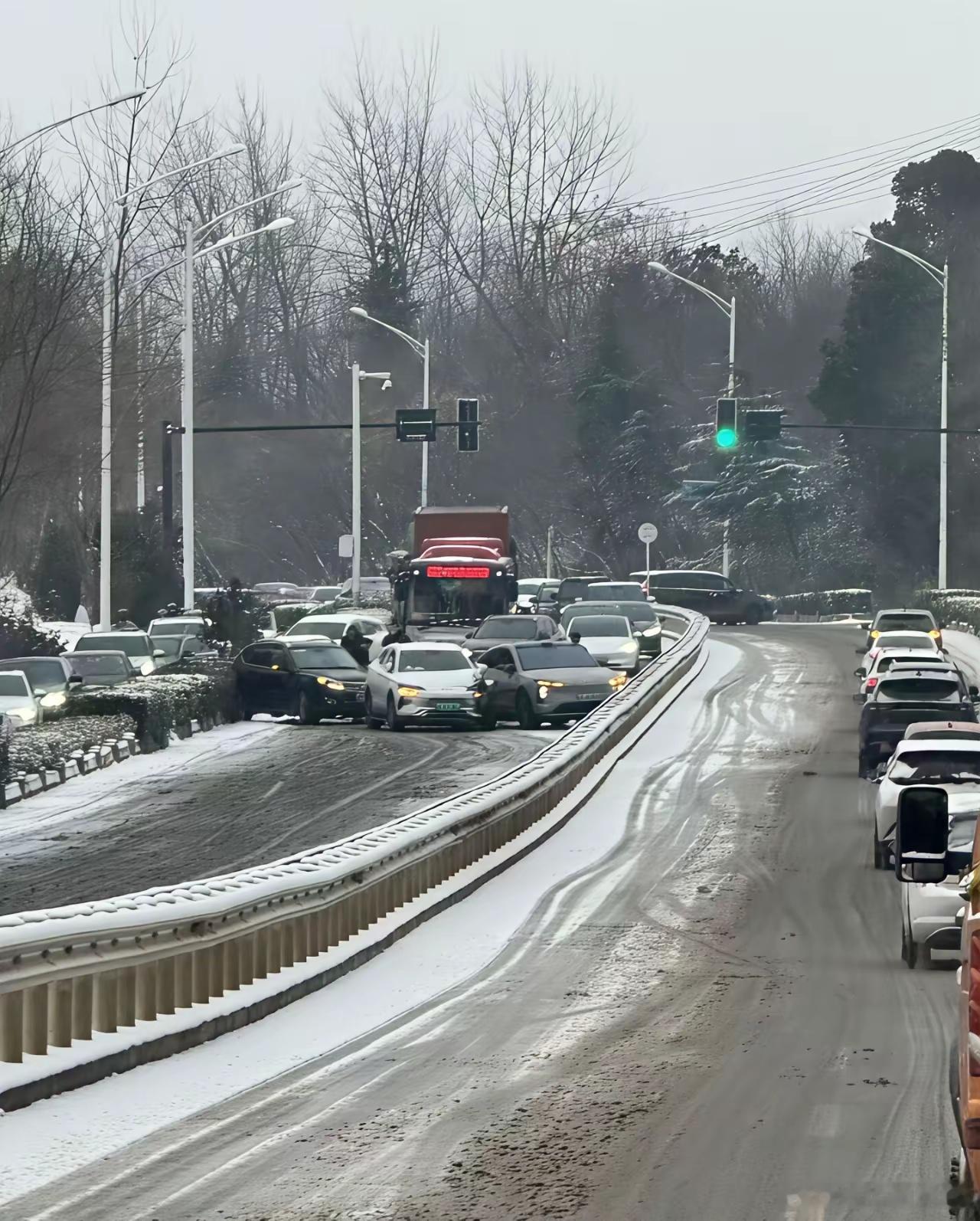 最近,南方下雪导致路面结冰打滑,好多人堵在路上,大家开车一定要注意安全。坐标:南京。