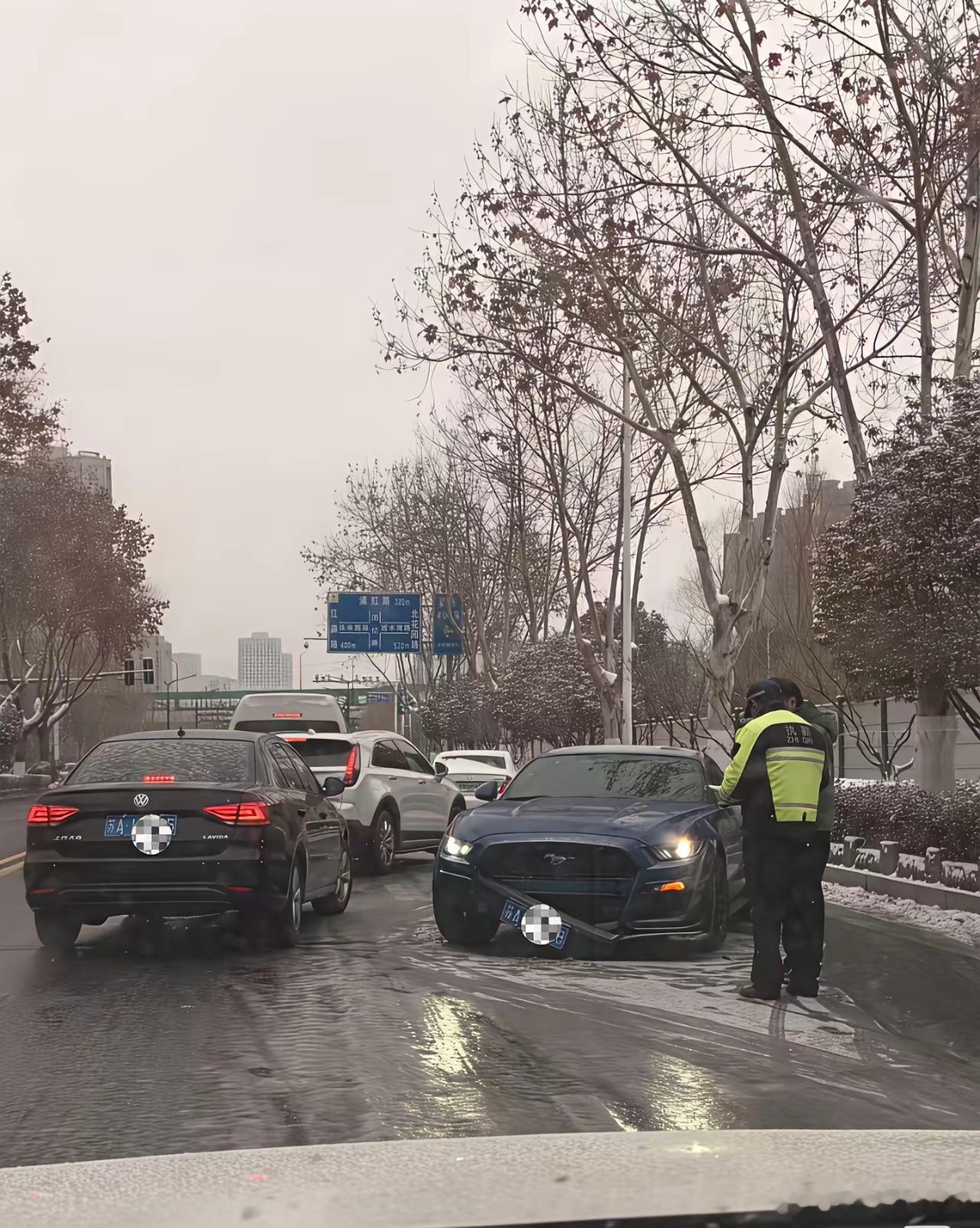 南京下雪大家务必注意安全,尤其开车骑车的,刚刚看到南京一个妹纸的朋友圈,连交警同
