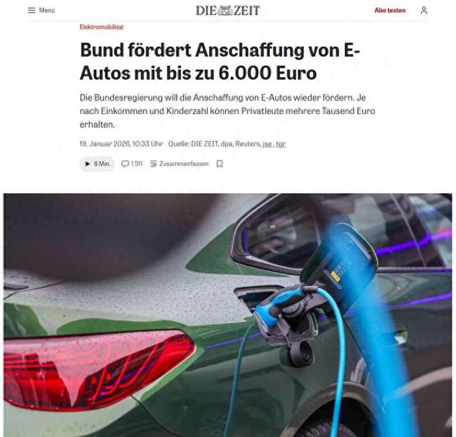 当地时间19日,德国环境部发布公告称,该补贴面向私人消费者,适用于自今年1月1日起新注册的纯电动汽车、部分插电式混动汽车及增程式电动汽车。根据政府设定的分级标准,将按车辆类型、家庭人口和收入水平提供补贴,金额最高可达6000欧元。