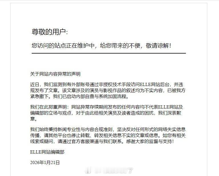 ELLE的网站发声明说自己的一个自媒体账号被被盗号了,啊!这…