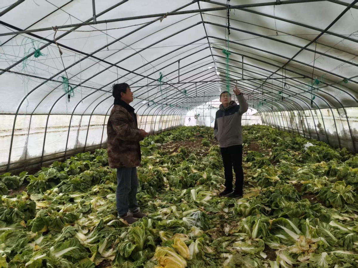 在种植户孙黎明的大棚内,范主席拉开棚门,一股湿气扑面而来。他放慢脚步,沿着大棚通道仔细查看白菜、趴地菠菜、芹菜等作物的生长状态,留意叶片是否有冻伤、萎蔫现象,询问种植户降雪前后棚内温度变化、作物生长是否出现异常。针对种植户提及的“担心积雪压棚”“棚内湿度偏高”等顾虑,范主席认真倾听、详细记录,逐一核实每座大棚的受损隐患与实际情况,确保不遗漏任何一处细节。他反复向村“两委”强调:“蔬菜大棚是农户的‘钱袋子’,也是群众的‘菜篮子’,要把雪后大棚安全放在心上,及时掌握情况、上报问题,全力保障农业生产不受大的影响。”