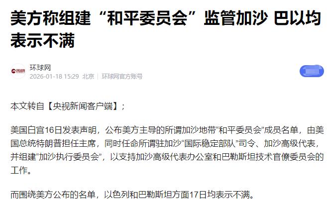 白宫发言人卡罗琳确认!“和平委员会”已经正式成立,美方已向全球约60个国家发出了邀请函,一些国家甚至已经接受了邀请,并打算缴纳10亿美元会费换取永久会员资格。   这个所谓的“和平委员会”,最初定位并非全球性机构。美方最初提出该机制时,对外宣称是为监督加沙地带战后过渡治理,负责停火后的支援、重建与秩序维护。   后续披露的章程草案却显露出不一样的野心。该机构已悄悄扩容服务范围,从单一的加沙地区,延伸到所有“受冲突影响或威胁的地区”,核心职能也从战后重建转向全球冲突调解,直接对标联合国的核心工作。   10亿美元的永久会员资格门槛,是整个机制最引人争议的地方。常规成员国任期被限定在三年,到期后需重新接受评估,能否续期全凭美方主导。   只有在章程生效首年一次性缴纳10亿美元,才能突破任期限制获得永久席位。这笔费用绝非小数目,甚至超过了美国作为联合国第一会费国每年应缴的常规会费额度。   更值得留意的是机构的权力结构。美方明确将由特朗普担任该委员会主席,且主席职位可续任,仅在自愿辞职或丧失行为能力时才可更换。   主席拥有专属权力,可自行设立、修改或解散附属实体,所有成员国表决通过的决定,最终仍需经主席批准才能生效。这意味着即便缴纳10亿美元成为永久会员,话语权也始终被美方牢牢掌控。   美方打造这一机构的操作,存在明显的双重标准。一边是向各国收取高额席位费,另一边美国自身却长期拖欠联合国会费。   截至目前,美国累计拖欠联合国会费已达37亿美元,涵盖常规预算欠款与维和摊款,直接触发《联合国宪章》相关条款,丧失了联大投票权。   联合国因这笔欠款多次陷入运营困境,不得不通过削减人员编制、下调预算开支维持运转,维和行动、人道主义救援等关键工作均受制约。   美方拖欠着本应承担的国际责任,却另起炉灶搭建新平台,本质是想绕开联合国框架,打造一个完全由自己掌控的“小圈子”。   过往几年,美国已先后退出60余个国际组织,其中30多个隶属于联合国系统,包括联合国教科文组织、人权理事会等。   美方不满现有国际机制无法完全顺从自身利益,便试图通过新机构重构规则,用金钱筛选盟友,将国际话语权变成明码标价的商品。   各国对这一委员会的态度差异明显。加拿大虽原则上同意加入,但具体细节仍在磋商,尚未给出最终定论。   意大利总理仅表示“愿尽一份力”,未明确是否针对该委员会。俄罗斯收到邀请后,仍在审议之中,暂未表态。   法国则直接拒绝了邀请,核心顾虑是该机构权力远超加沙过渡治理范围,可能破坏联合国框架,损害现有国际秩序。   美方为逼迫他国配合,还露出强硬手段。得知法国拒绝后,特朗普已宣布将对法国葡萄酒和香槟征收200%关税,用贸易制裁施压。   这种胁迫式操作,彻底暴露了该委员会的真实底色。它绝非美方宣称的“推动和平的国际组织”,而是服务于美式地缘战略的工具。   10亿美元的永久席位,本质是美方筛选“听话且有实力”盟友的门槛。多数发展中国家无力承担这笔费用,自然被排除在外,该机构也难以获得全球普遍认可。   即便是美国的盟友,也存在诸多顾虑。欧盟部分国家对机构规则表达警惕,多名西方外交官直言,这种机制会损害联合国权威性,让国际秩序陷入混乱。   联合国作为全球唯一兼具道义与法律权威的多边机构,70多年来维系着全球最基础的和平底线,覆盖马里维和、叙利亚难民救助、新冠疫苗分配等诸多领域。   这些工作是美方主导的新机构难以覆盖的,更不是10亿美元席位费能替代的。美方用商人逻辑操控国际政治,把多边合作变成利益交换。   这种做法只会加剧国际社会分裂,让全球治理体系更加脆弱。国际社会的和平与稳定,从来不是靠金钱堆砌的特权圈子维系,而是建立在主权平等、规则共守的基础之上。   美方试图用新机构架空联合国、推行霸权的算计,最终只会让自身在国际社会更加孤立。真正的和平,从来不是少数国家掌控的生意,而是所有国家共同追求的目标。