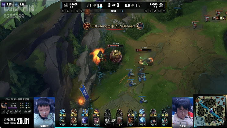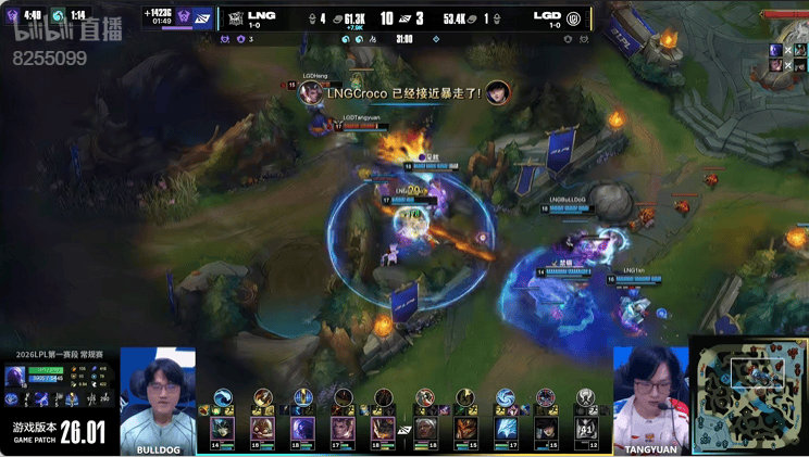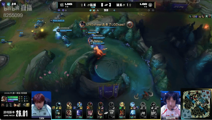 4分钟:LNG中路集火击杀对方皇子,但是对方卡尔玛赶到治疗收掉赵信打出一换一