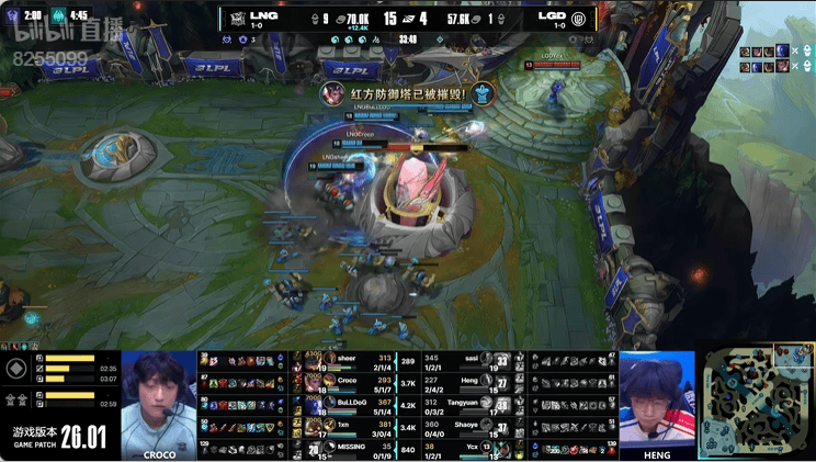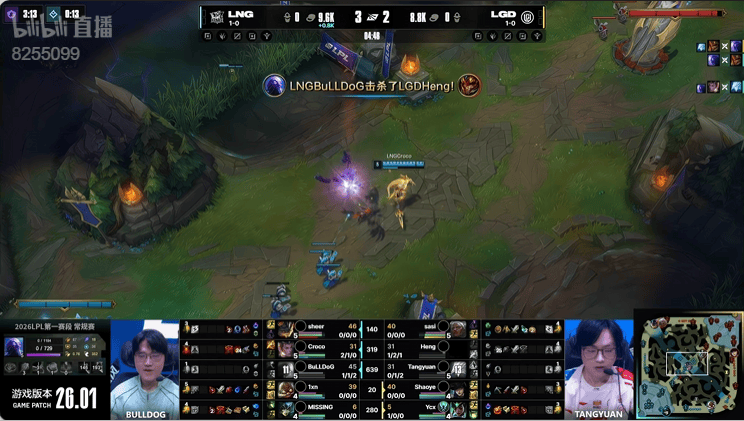 32分钟:LNG野区强开击杀对方四人一波推平基地