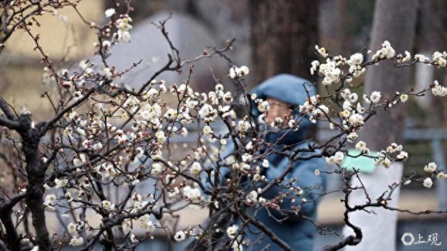目前,莘庄梅园“梅中奇品”龙游梅悄然进入盛花期,吸引市民冒寒观赏。