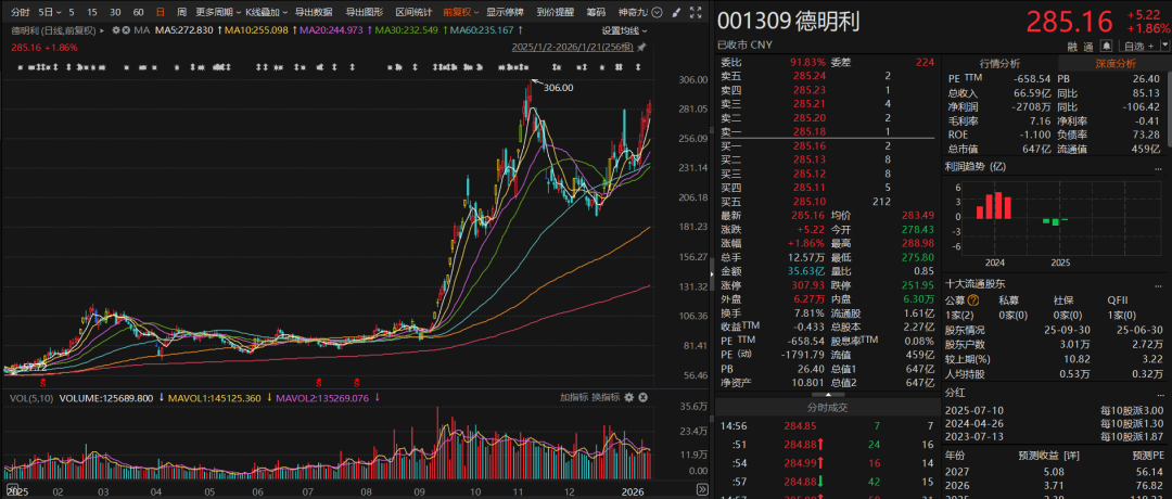 1月21日晚间,存储芯片龙头之一德明利(001309)发布2025年度业绩预告称,预计归属于上市公司股东的净利润为6.50亿元—8.00亿元,比上年同期增长85.42%—128.21%。