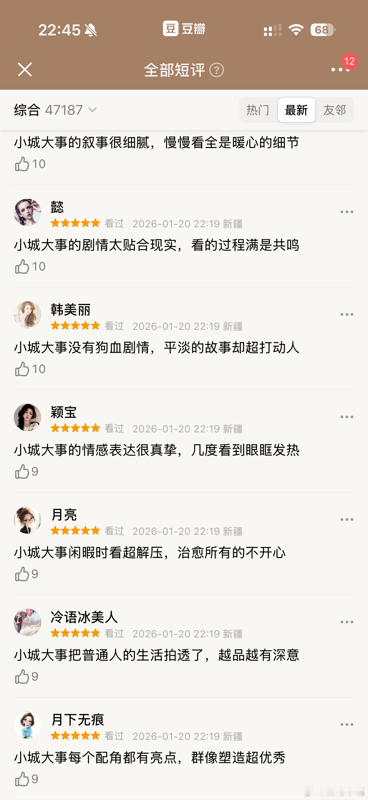 年代剧终于有正常婆婆了但是这个东西看着不太正常啊!《小城大事》豆瓣评分同一分钟同一个省冒出那么多5⭐!正常吗?