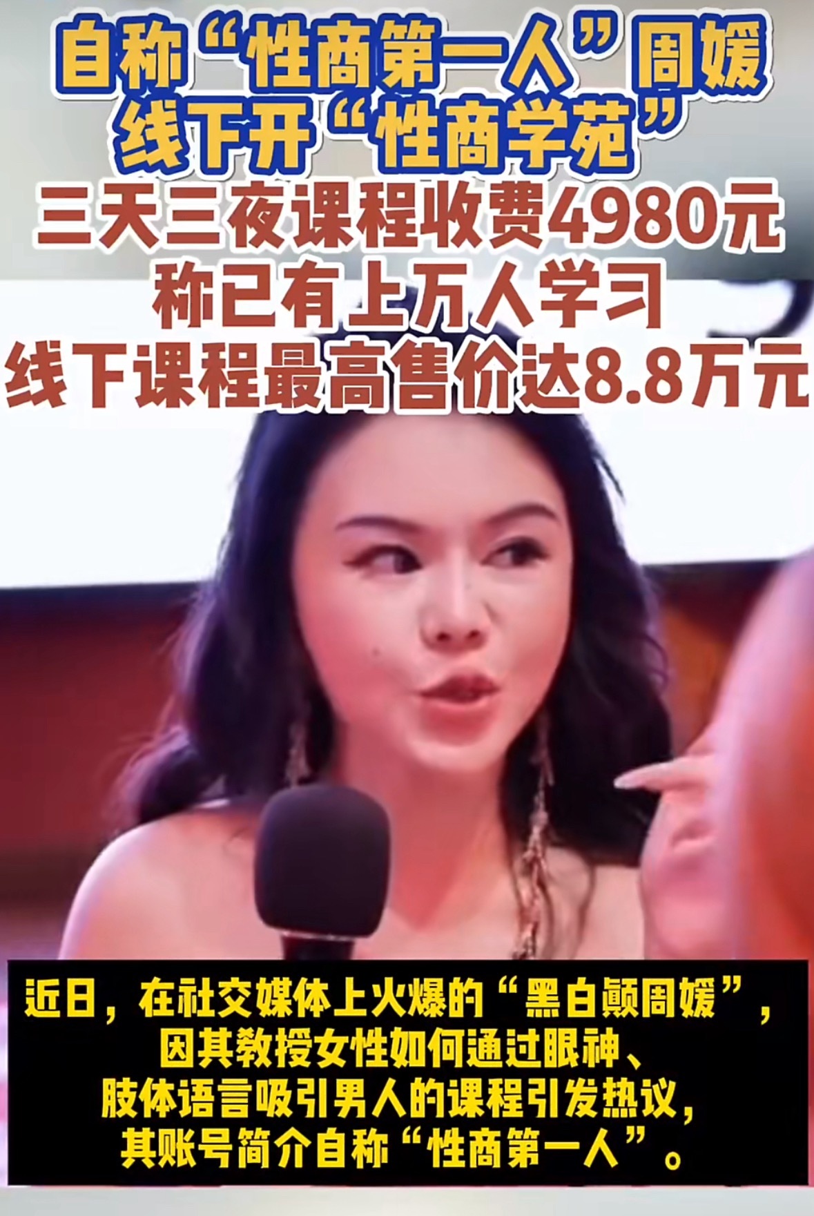 网红教与异性交往课3天收费4980元上一个这么搞的好像叫“曲曲大女人”的吧,建议查税。