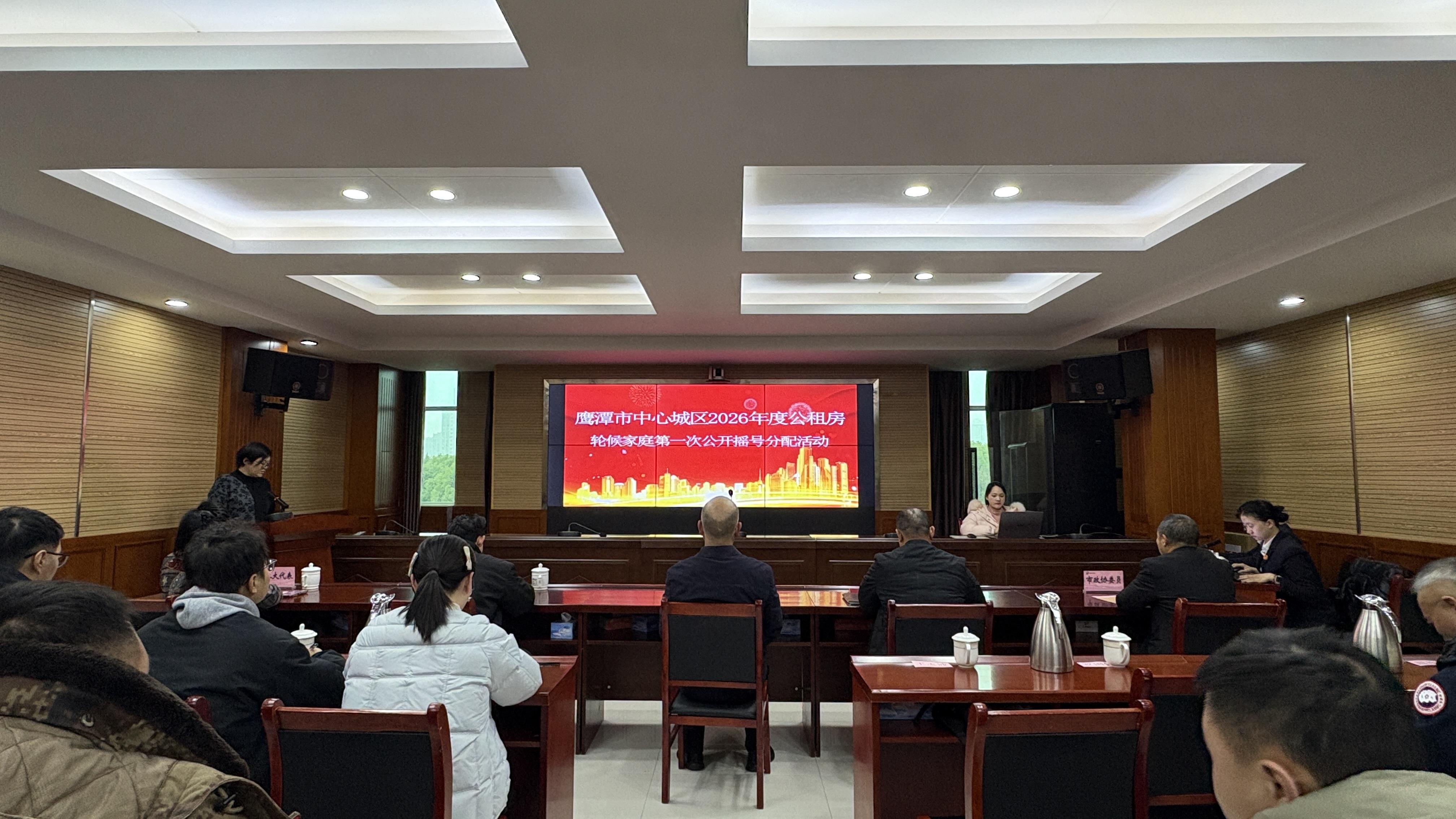 1月21日下午,市住建局在信江新区管委会成功举行了鹰潭市中心城区2026年度公租房轮候家庭第一次公开摇号配租仪式。市住房保障中心主任周任昌,月湖区政府、信江新区管委会相关领导,人大代表、政协代表及轮候家庭代表等参加了此次摇号仪式。