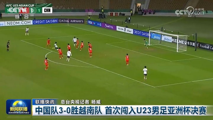 排面!《新闻联播》播报U23国足历史首次晋级U23亚洲杯决赛