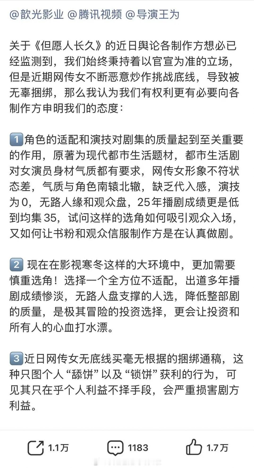 张晚意粉丝永拒沈月,目前网友持正反两个观点支持合作:沈月生活剧、年代剧里还算灵动,六姊妹这类剧里也不出戏反对合作:沈月集均35万,无法吸引观众入场但愿人长久