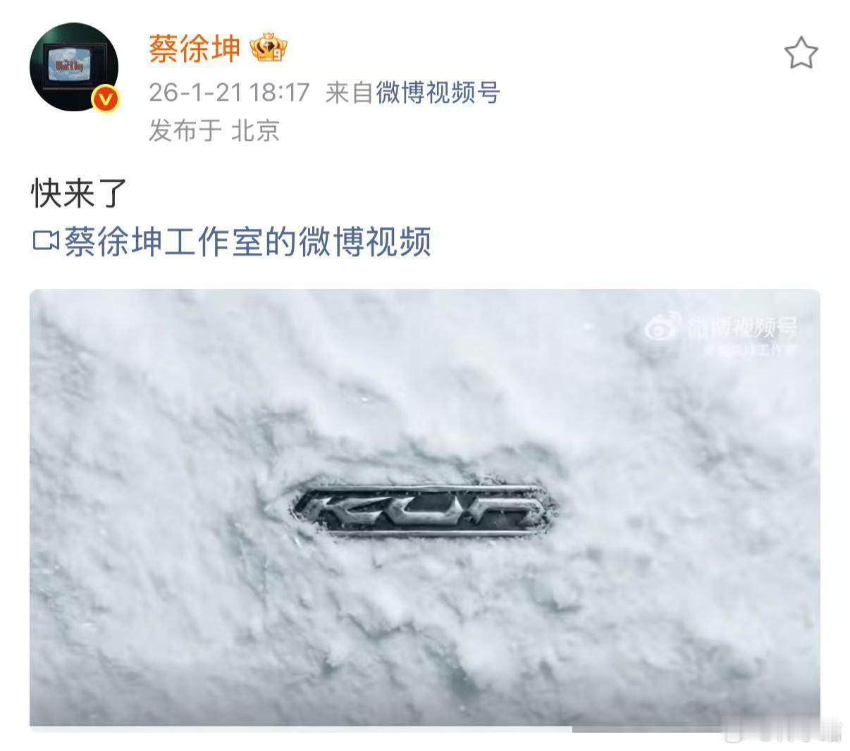 蔡徐坤 快来了 新物料一释出就刷爆朋友圈!雪层之下的视觉设计太绝了,超强的质感和冲击感,让人一眼就爱上,这就是蔡徐坤的审美!1月23日新专辑预约开启,QQ音乐等平台已经备好,等待的时光终于要结束,耳朵马上就能迎来顶级音乐体验,相信这张新专会收录超多优质作品,每一首都值得反复循环,蔡徐坤用实力证明自己,ikun们一起燥候,坐等预约开启!