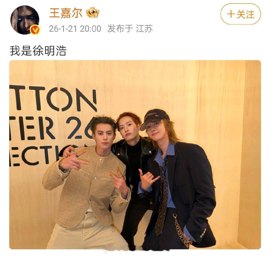 王鹤棣、王嘉尔、徐明浩发LV活动合照了