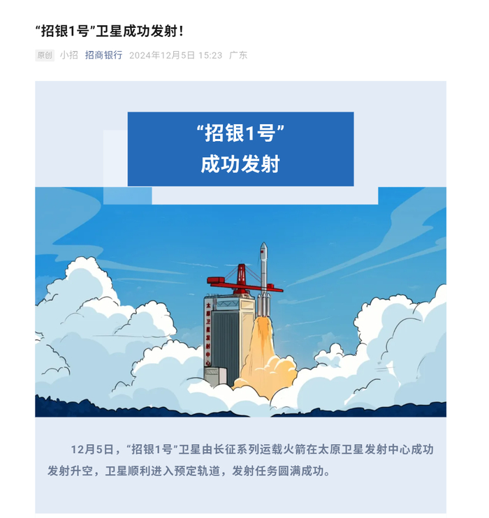 记者还注意到,这并非招商银行首次发射卫星,其分别在2024年12月、2025年3月发射了“招银1号”“招银2号”。彼时,招商银行便回应称,通过卫星数据,招行能够更好地监测市场动态、优化风险管理,并为客户提供更精准的金融产品和服务。