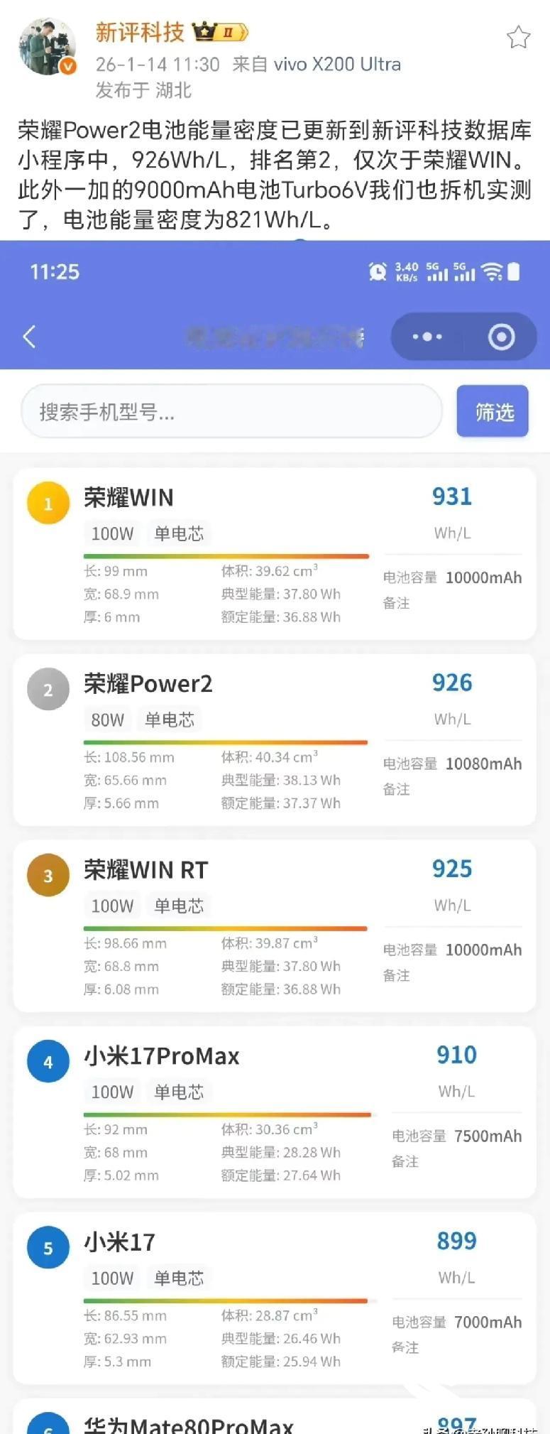 🔥友商加油!今年万毫安电池手机只有荣耀能造! 据站哥消息,友商今年暂无万级电池试验计划,三款万毫安机型全是荣耀:Powericon2(100080mAh)、WIN(10000mAh)、WIN GT(100000mAh),且电池密度也稳居前列。 不是单纯堆电池,而是兼顾轻薄的技术壁垒,别家暂未突破,今年想入万毫安机,荣耀是唯一选择,期待友商明年迎头赶上!
