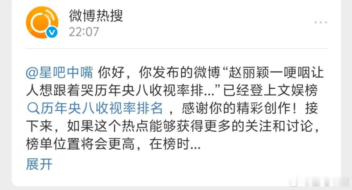 第一次发博上热搜!来看时间线,短短不到一个小时收到系统3条消息!历年央八收视率排