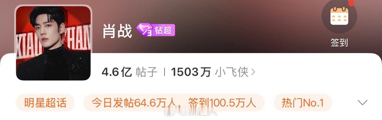 肖战超话签到破一百万肖战超话签到破100万人 好牛👍 就这个肖战牛🐮烫烫的很