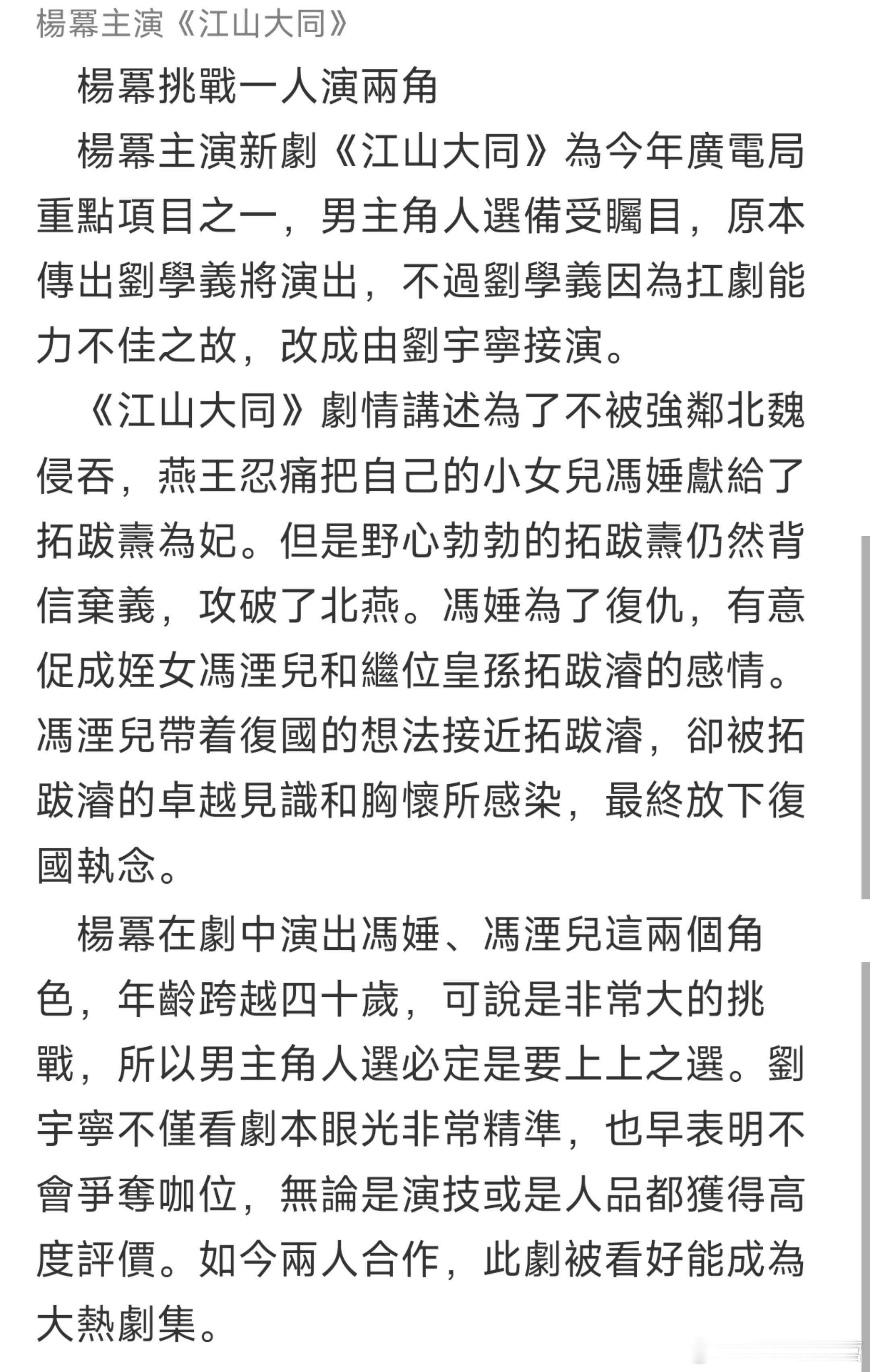 澳门日报——杨幂挑战一人演两角!《江山大同》尚未官宣!已先登上澳媒~江山大同