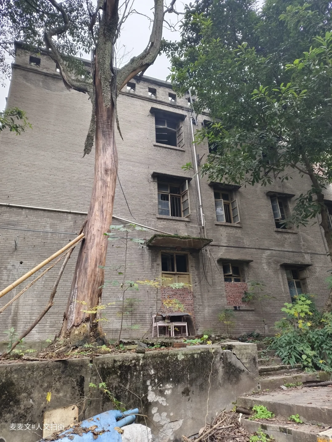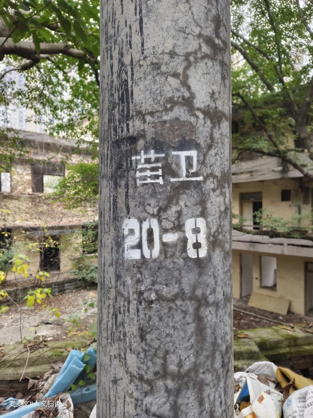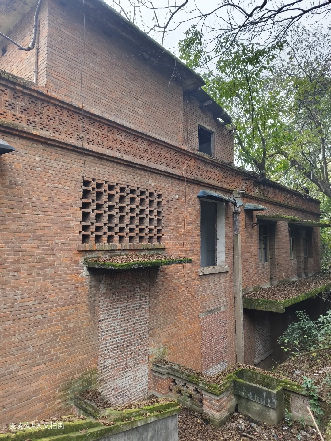 水泥杆上“前卫20-8”的白色漆字,是时光刻下的坐标,红砖墙爬满青苔,宣传栏的瓷砖边框还在,内里却只剩剥落的纸痕,像极了被抹去的厂史细节。1966年从江陵厂分离而立的前卫仪表厂,曾是重庆军工仪表的标杆,引进德国技术造燃气表、与外企合资建厂的辉煌,都藏在这些老建筑的缝隙里。