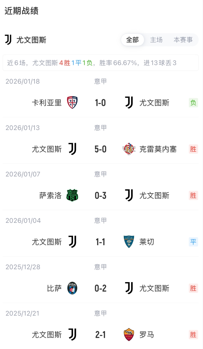 尤文首发:16-迪格雷戈里奥、15-卡卢卢、3-布雷默、6-凯利、27-坎比亚索、5-洛卡特利、21-米雷蒂、22-麦肯尼、19-K·图拉姆、10-伊尔迪兹、30-戴维