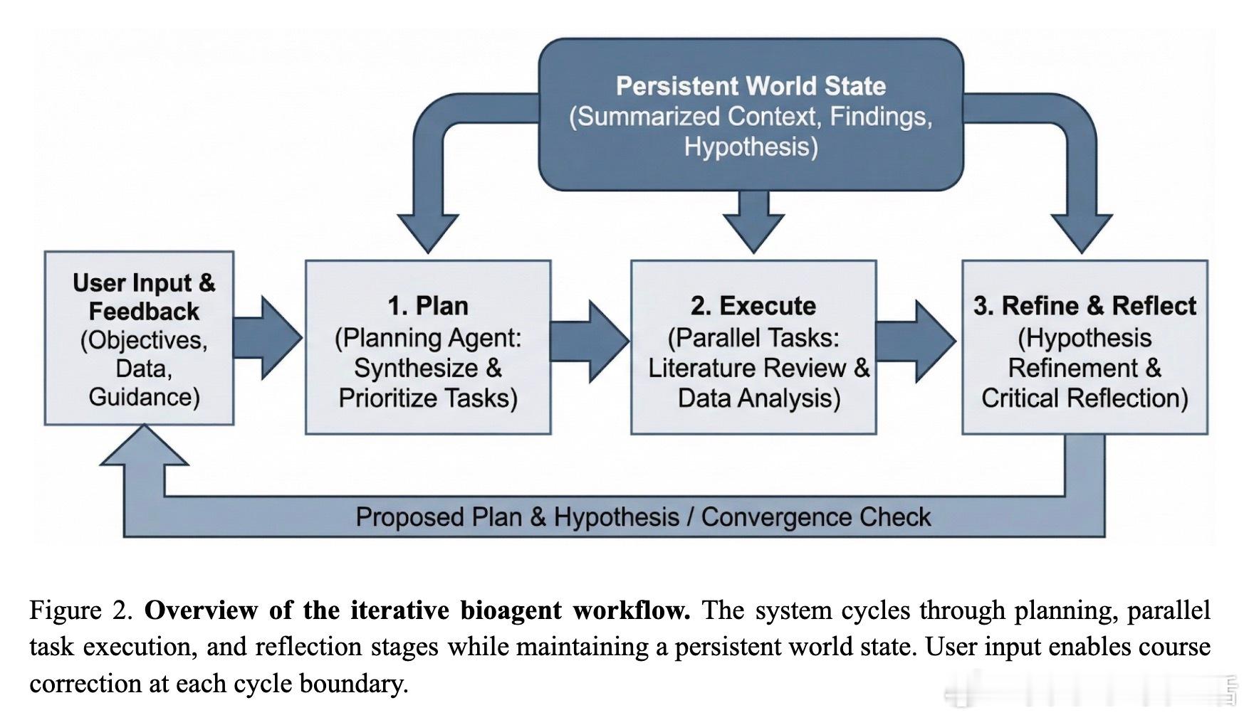 [AI]《Rethinking the AI Scientist: Interactive Multi-Agent Workflows for Scientific Discovery》L Weidener, M Brkić, M Jovanović, R Singh... (2026)科学发现的范式正在发生剧变。如果说 AlphaFold 获得诺贝尔奖标志着 AI for Science 时代的开启,那么 Deep Research 的出现则预示着 AI 科学家正从昂贵的黑盒演变为触手可及的协作者。以下是关于这一前沿系统 Deep Research 的深度解读。1. 告别黑盒:从批处理到实时协作目前的 AI 科学家系统,如 Sakana 或 Google 的方案,大多采用批处理模式。研究人员输入一个课题,等待数小时甚至十几天,最后得到一份报告。这种黑盒过程排除了人类的实时引导。Deep Research 将研究周期从小时级缩短至分钟级。它认为,科学发现不应是漫长的等待,而应是一场人类与 AI 之间高频互动的对话。2. 核心架构:多智能体协同的实验室Deep Research 并非单一的大模型,而是一个由专业智能体组成的团队。规划者负责统筹,数据分析师负责代码与统计,文献专家检索海量论文,创新检测器负责评估假设的原创性。这些角色通过一个持续的“世界状态”连接,确保在多轮迭代中,研究背景和中间结论不会丢失。3. 世界状态:AI 的科研长效记忆传统 AI 在长对话中容易遗忘关键细节。Deep Research 引入了持久化世界状态,它不仅记录对话,更动态维护着当前的科研目标、已验证的假设、发现的洞察以及数据集描述。这种结构化记忆让 AI 能够像真正的科学家一样,在失败中学习,在积累中进化。4. 数据分析:不仅是生成代码,更是理解逻辑在 BixBench 计算生物学基准测试中,Deep Research 的数据分析智能体表现惊人。它在开放式回答上的准确率达到 48.8%,在多选题上达到 64.5%,远超 GPT-5 和 Claude 等基准。它的强大之处在于“知识引导的迭代”:它会根据代码运行结果不断修正内部知识库,这种自我纠错能力是复杂科研任务成功的关键。5. 两种模式:灵活性与自主性的平衡系统支持半自主和全自主两种模式。在半自主模式下,AI 会在遇到矛盾、意图模糊或研究收敛时设置检查点,询问人类专家的意见。这种人机协作模式避免了 AI 在错误方向上狂奔,让研究者的直觉与 AI 的算力完美结合。6. 局限性:开放获取的边界与创新的定义尽管强大,Deep Research 仍面临挑战。由于版权限制,它主要依赖开放获取(Open Access)文献,这可能导致它错过付费墙后的前沿成果。此外,自动化创新检测仍是一个难题。语义上的相似并不等同于科学意义上的重复,如何精准定义“新颖性”依然是 AI 科学家的终极挑战。7. 深度思考:AI 正在重塑科研的摩尔定律AI 科学家并不是要取代人类,而是要将科学家从繁琐的数据清洗和文献检索中解放出来。真正的智能不在于一次性给出正确答案,而在于不断修正假设的韧性。当科研的反馈周期从月缩短到分钟,科学发现的摩尔定律将正式生效。8. 开源与资源BioAgents 的编排框架已在 GitHub 开源,旨在推动社区共同构建更透明、可复现的 AI 科学工作流。项目链接:github.com/bio-xyz/BioAgents论文链接:arxiv.org/abs/2501.12542