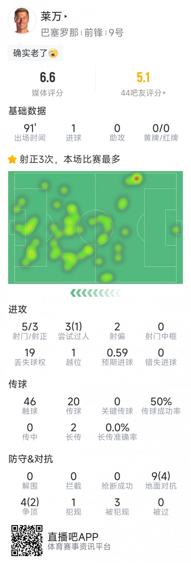 直播吧1月22日讯在本轮欧冠,巴萨4-2击败布拉格斯拉维亚。以下为莱万本场数据: