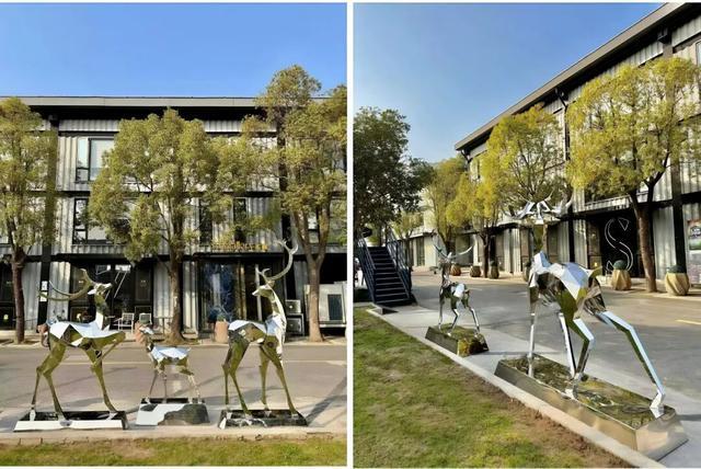 雕塑选用不锈钢材质——这一代表工业文明的媒介,来塑造象征自然与灵性的鹿,在视觉上形成强烈反差,也传递出一种深刻的人文理念:即使在钢筋水泥的城市中,自然的诗意从未缺席。