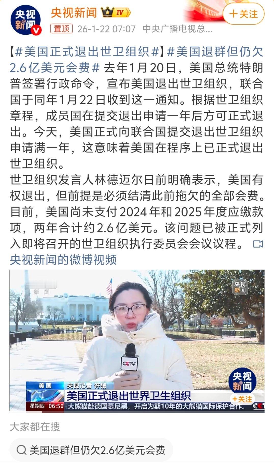 美国正式退出世卫组织1月7日就说要退出66个群,按照美国这个性格,退群拖欠的2.