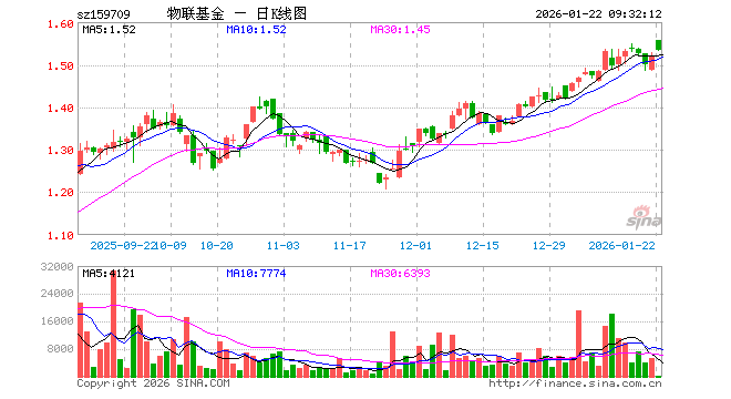 1月22日,物联网ETF工银(159709)开盘涨2.57%,报1.556元。物联网ETF工银(159709)重仓股方面,中际旭创开盘涨1.41%,新易盛涨0.12%,美的集团涨0.60%,北方华创涨1.14%,汇川技术涨0.65%,中兴通讯涨1.04%,海康威视涨0.31%,科大讯飞涨0.88%,歌尔股份涨0.89%,华工科技涨0.90%。