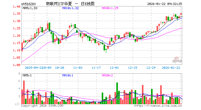 1月22日,物联网ETF华夏(516260)开盘涨0.90%,报1.340元。物联网ETF华夏(516260)重仓股方面,中际旭创开盘涨1.41%,立讯精密涨0.65%,汇川技术涨0.65%,中兴通讯涨1.04%,兆易创新涨4.01%,豪威集团涨0.67%,科大讯飞涨0.88%,海康威视涨0.31%,美的集团涨0.60%,海尔智家涨0.15%。