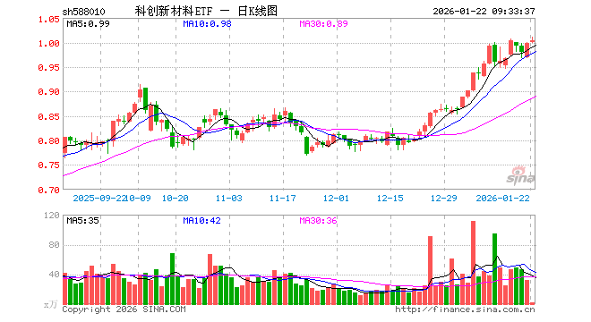 科创新材料ETF(588010)业绩比较基准为上证科创板新材料指数收益率,管理人为博时基金管理有限公司,基金经理为唐屹兵,成立(2022-09-30)以来回报为-0.25%,近一个月回报为24.20%。