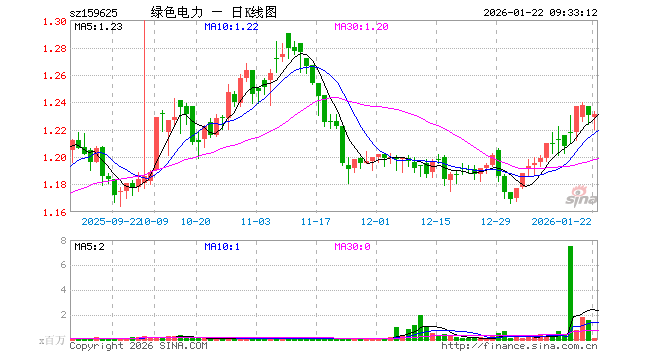 1月22日,绿色电力ETF(159625)开盘跌0.08%,报1.229元。绿色电力ETF(159625)重仓股方面,三峡能源开盘涨0.00%,中国核电涨0.79%,长江电力涨0.00%,国投电力涨0.00%,上海电力跌0.52%,中国广核涨0.52%,川投能源涨0.00%,国电电力涨0.20%,华能水电跌0.11%,华能国际涨0.27%。