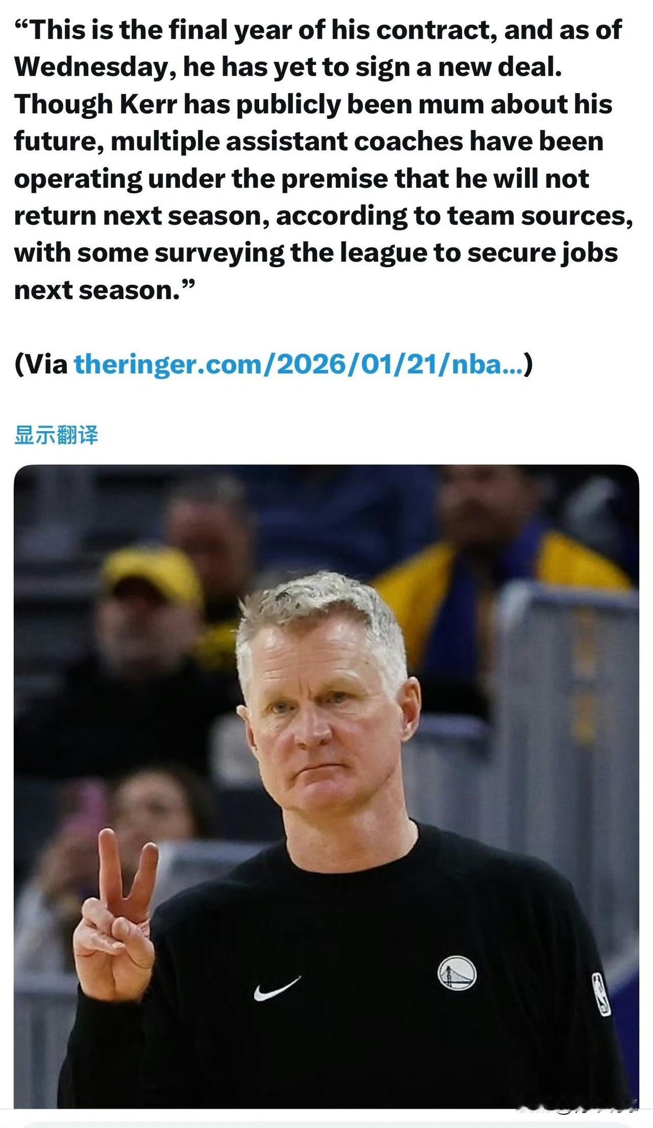 匪夷所思!科尔竟然要失业了! 据权威记者Murdock报道:科尔下赛季可能不会