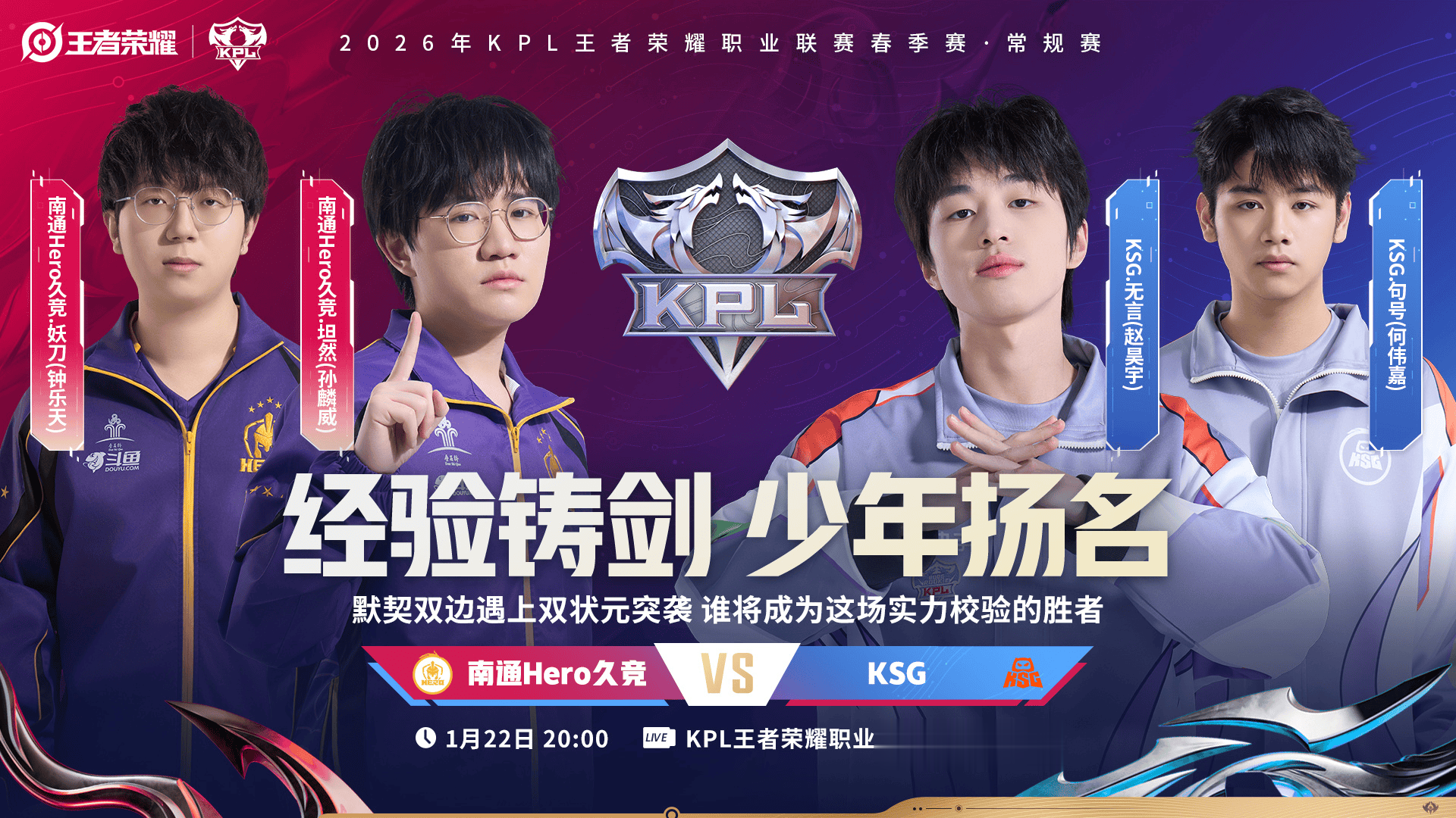 南通Hero久竞能否吸取经验,及时调整,拿到春季赛首胜?上场比赛中轮换登场帮助队伍拿下胜利的KSG风箫(于翔任)本次首发登场,他能否愈战愈勇,帮助KSG王者荣耀分部拿下这一分?