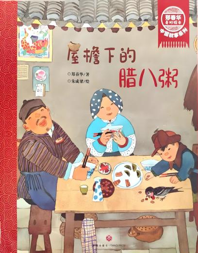 《屋檐下的腊八粥》的作者是郑春华,由少年儿童出版社出版。故事以冬日受伤滞留屋檐下的小燕子为视角,观察主人公胖婶将花生、绿豆、百合、黄豆、枣子、木耳、米仁、核桃仁八种食材熬煮腊八粥的场景。绘本通过家庭制作传统食物的情节展现腊八节习俗,传递团圆文化内涵。
