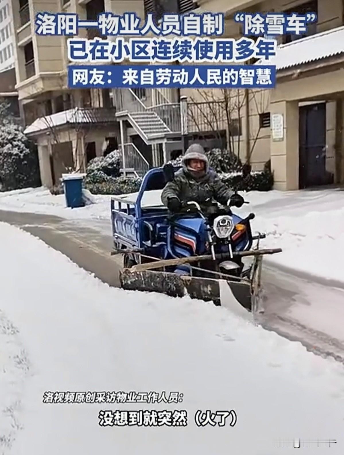 洛阳一物业人员,开通脑路,独辟蹊径,创造发明了经济高效、省时省力的除雪神器。