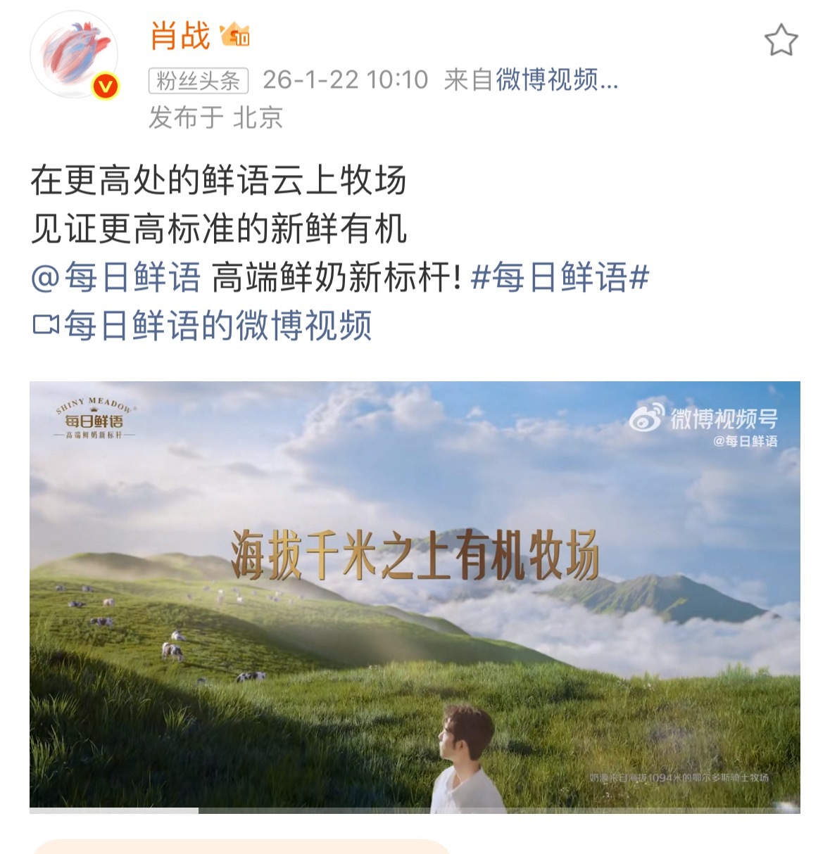 肖战 每日鲜语肖战成为每日鲜语全新品牌代言人,蒙牛旗下高端奶品,2026更加美好